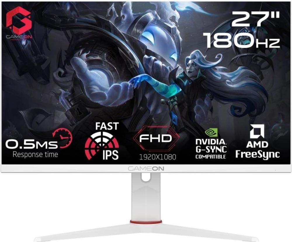 مواصفات شاشة GAMEON مقاس 27 بوصة مع لوحة IPS ومعدل تحديث 180 هرتز باللون الأبيض: